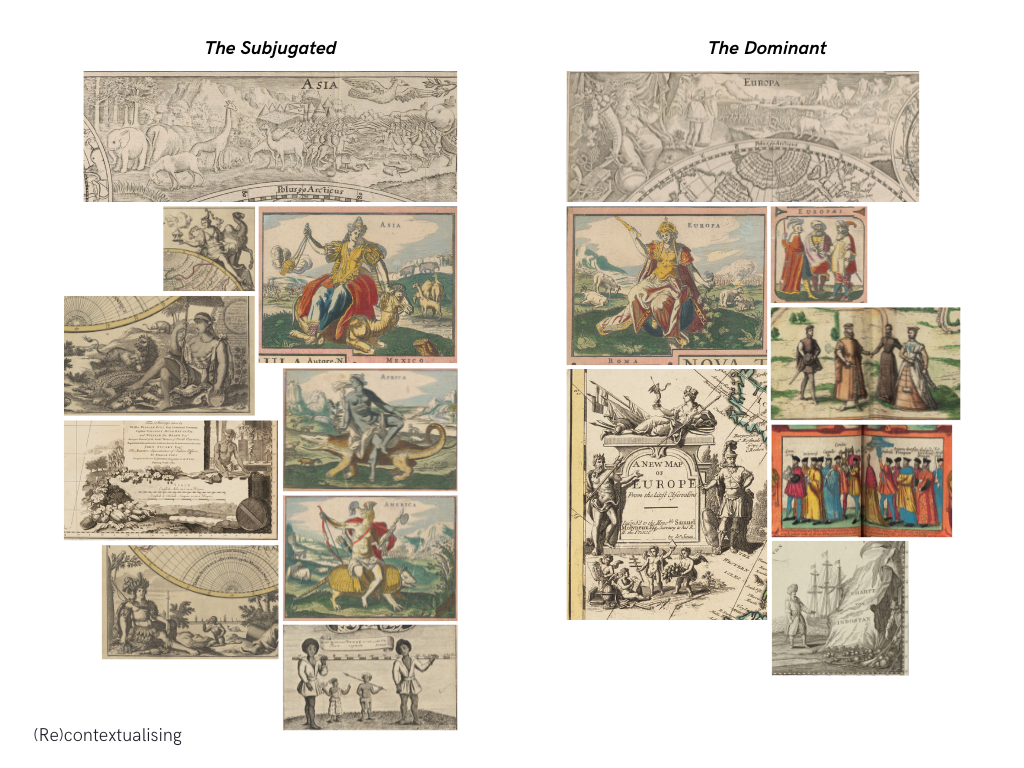 While in the previous week, anthropomorphic figures were examined to visualise colonial hierarchies, this week’s development examines deeper into the structure of map projection as a presentation of ideological control.
